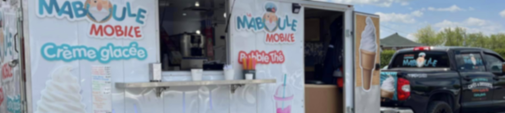 Rendez-le inoubliable avec notre crèmerie mobile, disponible même pendant les mois d'hiver. En plus de nos produits les plus populaires, nous offrons un service souriant et professionnel, pour faire de votre événement une vraie fête de la crème glacée.La Maboule Mobile, c'est bien plus qu'un food truck, c'est une explosion de saveurs sucrées sur roues, à votre disposition toute l'année en Montérégie. Gardez un oeil sur la Maboule Mobile, ou mieux encore, réservez-nous pour votre prochain événement!