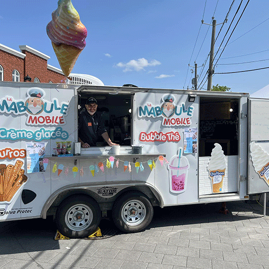 Peu importe la saison, la Maboule Mobile est là pour vous servir la délicieuse crème glacée du Capitaine Maboule. Notre food truck sillonne la région tout au long de l'année, apportant nos délices sucrés aux marchés, festivals, événements sportifs et corporatifs, ainsi qu'à vos événements privés.Dotée d'un menu adaptable à la température, la Maboule Mobile vous propose un choix varié comprenant nos churros croustillants, notre crème glacée onctueuse, notre slush rafraîchissante, notre café réconfortant, notre chocolat chaud gourmand et notre Bubble Tea exotique.